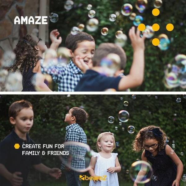 - Maakt gebruik van standaard bellenblaasvloeistof