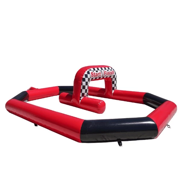 Onze stoere opblaasbare racebaan heeft een afmeteing van 6.1 x 4.5 x 1.55 (L x B x H)