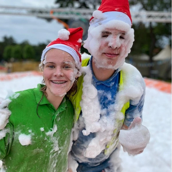 Muziek, daar zorgt onze DJ wel voor. Samen lekker dansen in het schuim. Hoe leuk is dat?