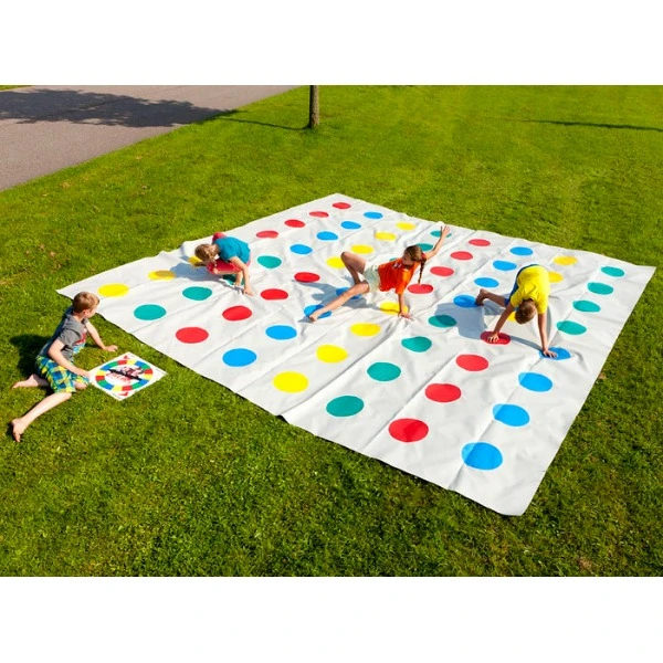 De mat waar het hele spel op staat, is in totaal 5 bij 5 meter groot.