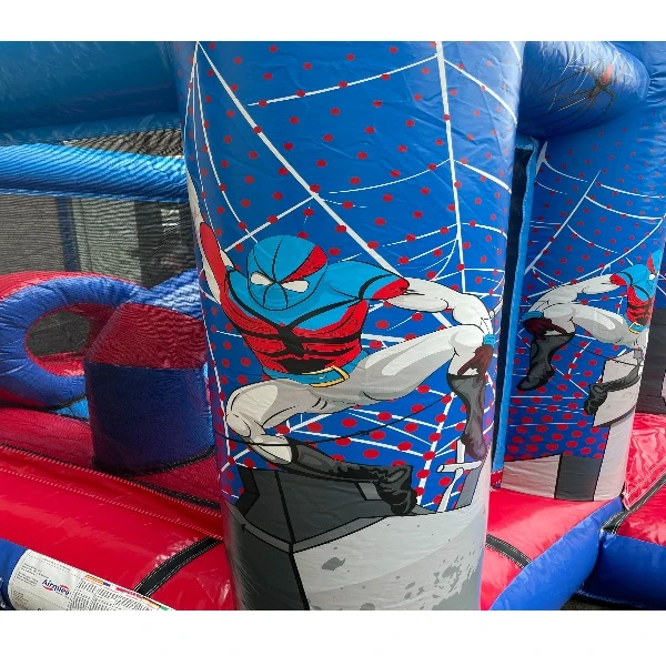 Het springkussen is voorzien van prints en obstakels die aansluiten bij het superhelden thema. Het spider kussen is erg leuk voor bv. thema- of kinderfeestjes.